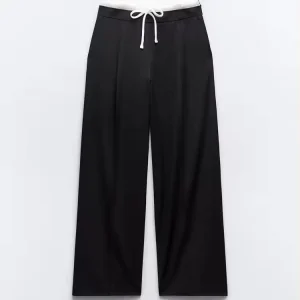 Women's Double Waist Wide Leg Pants Adjustable High Elastic Waistband Front Darts Back False Welt Pocket Stylish Design