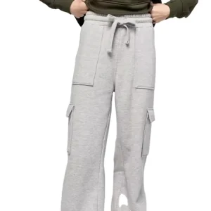 Women's High Quality Light Grey Wide-leg Cotton Workwear Sweatpants