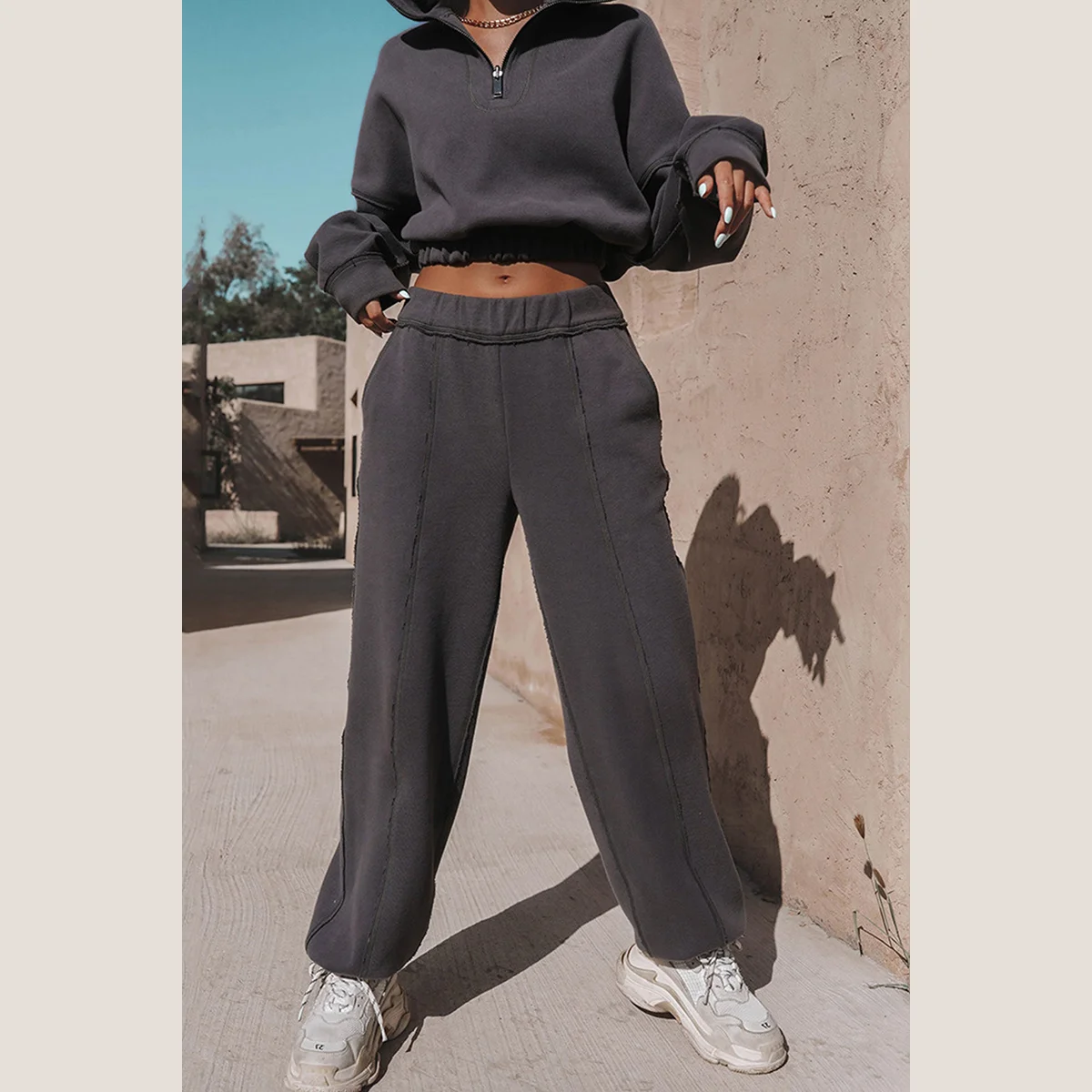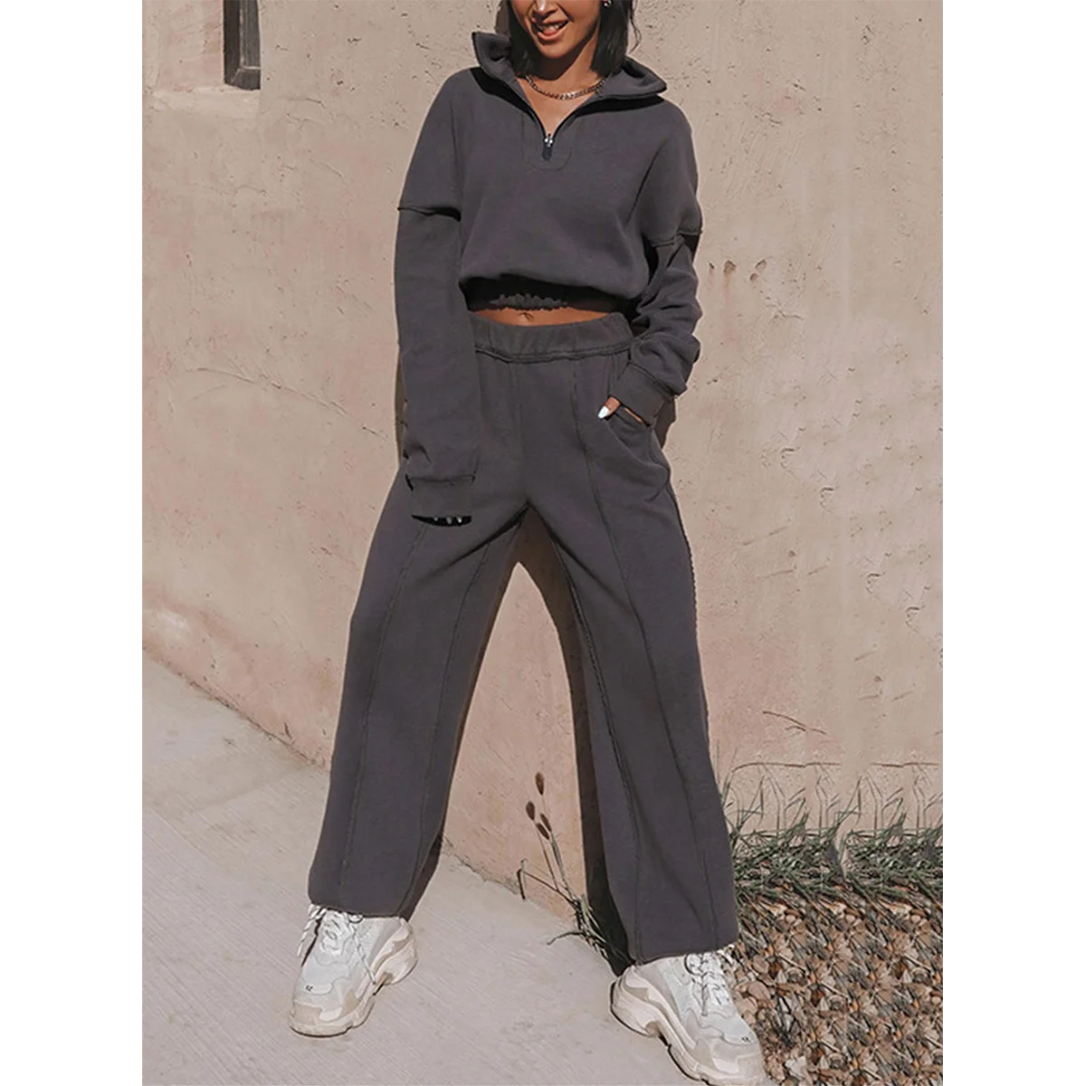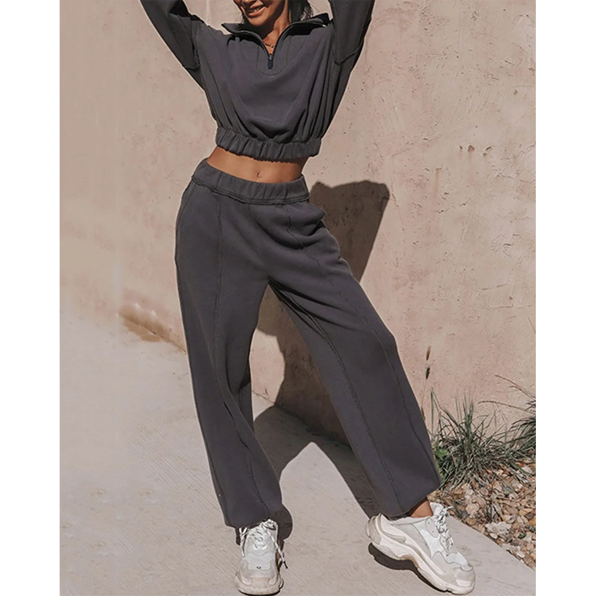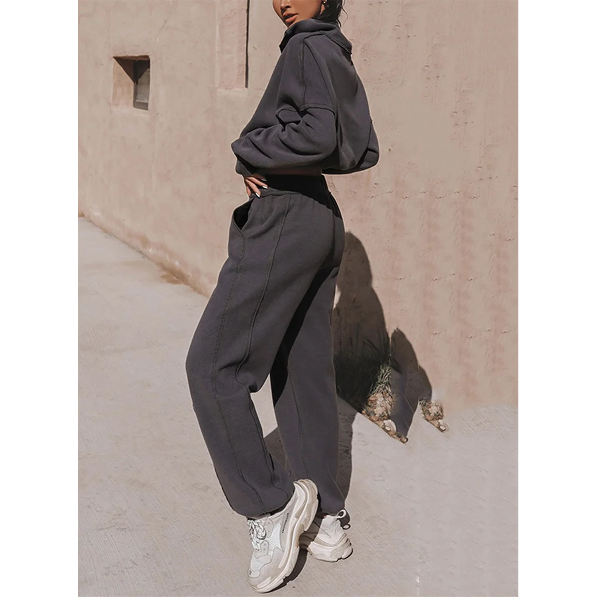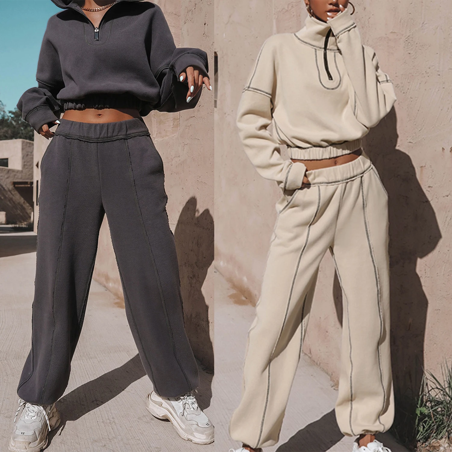 Fast Women Fashion Crop Hoodies Sets Autumn Striped Zipper Turtleneck Sweatshirt and Jogger Sets