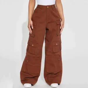 Women's Jeans High Quality Baggy Wide Leg Denim Pants Women's Jeans Zipper Fly High Rise Cargo Jeans With Pocket