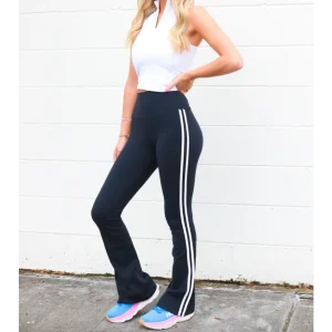 Double Contrast Striped Flare Women's Legging High Waist Pants Sports Slim Trousers